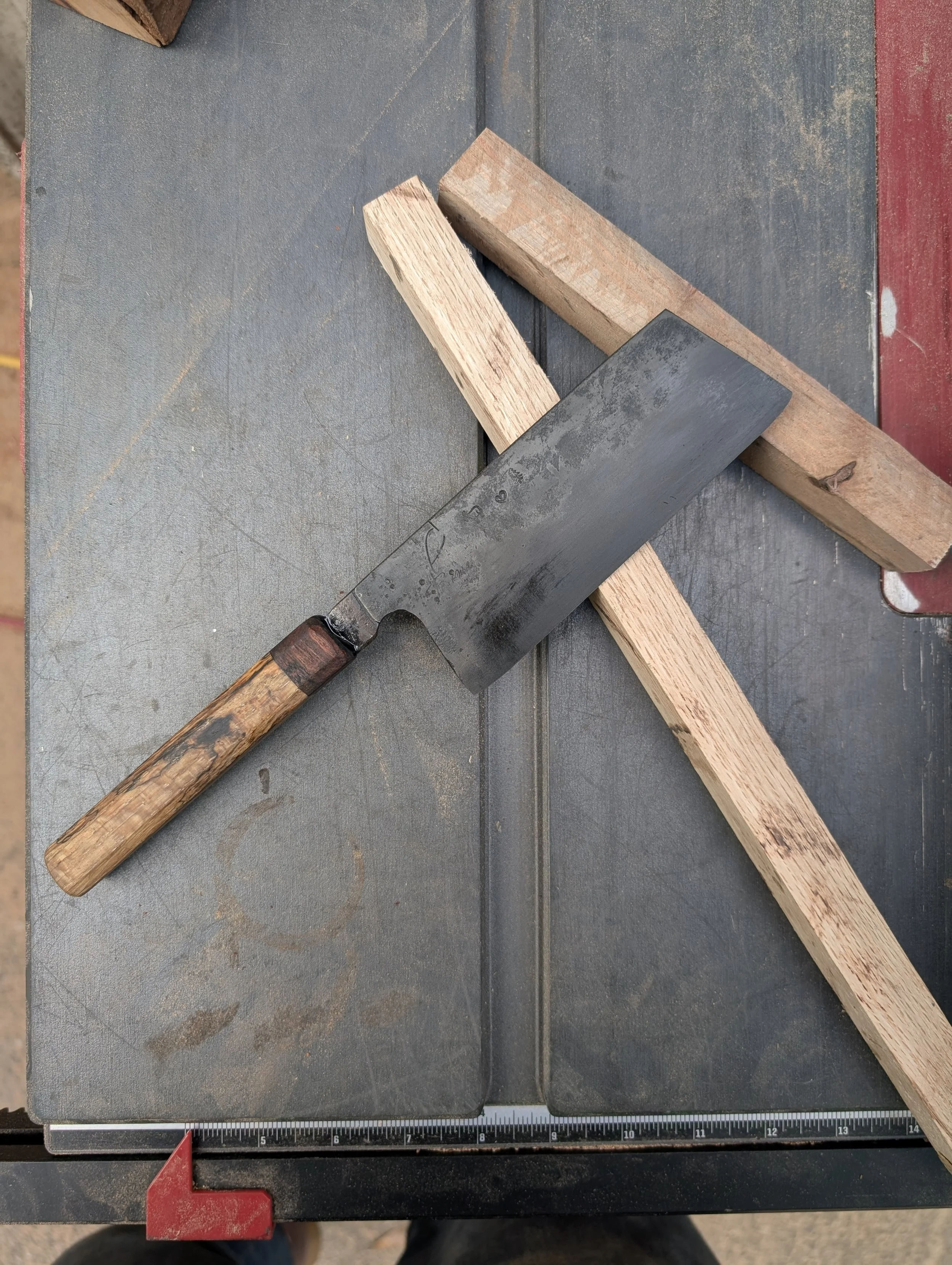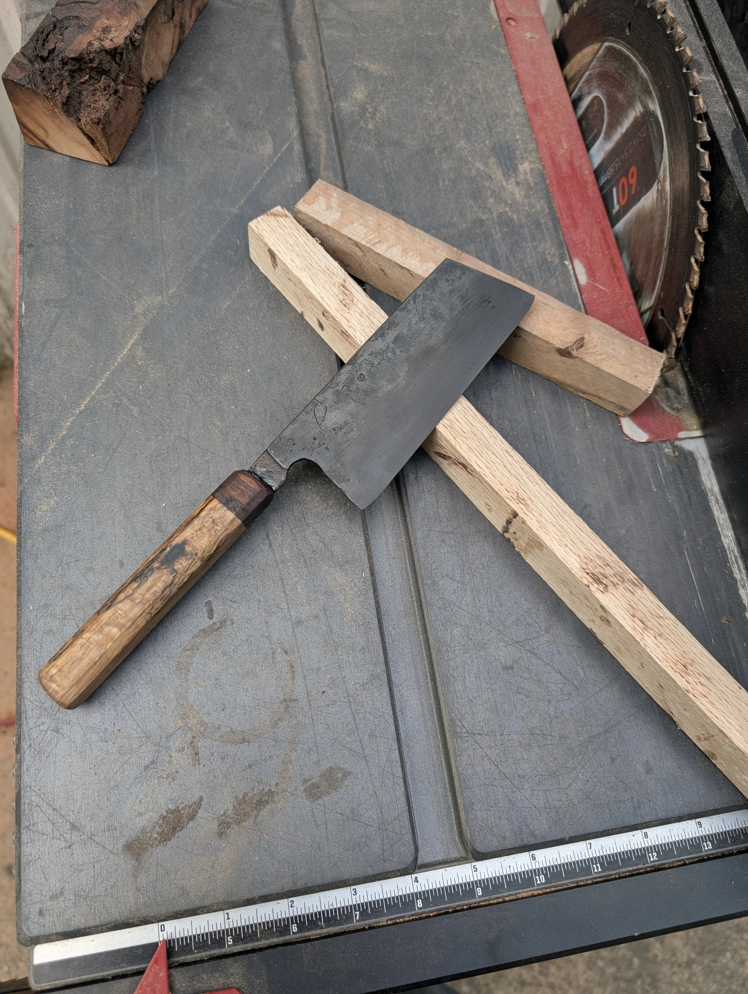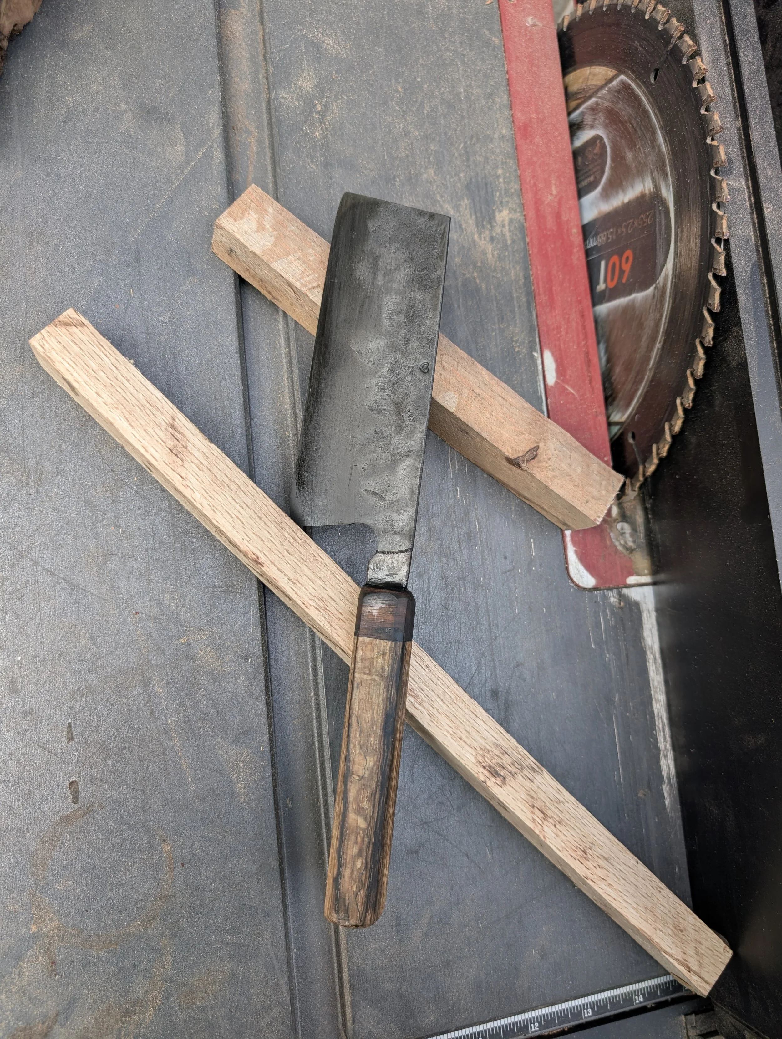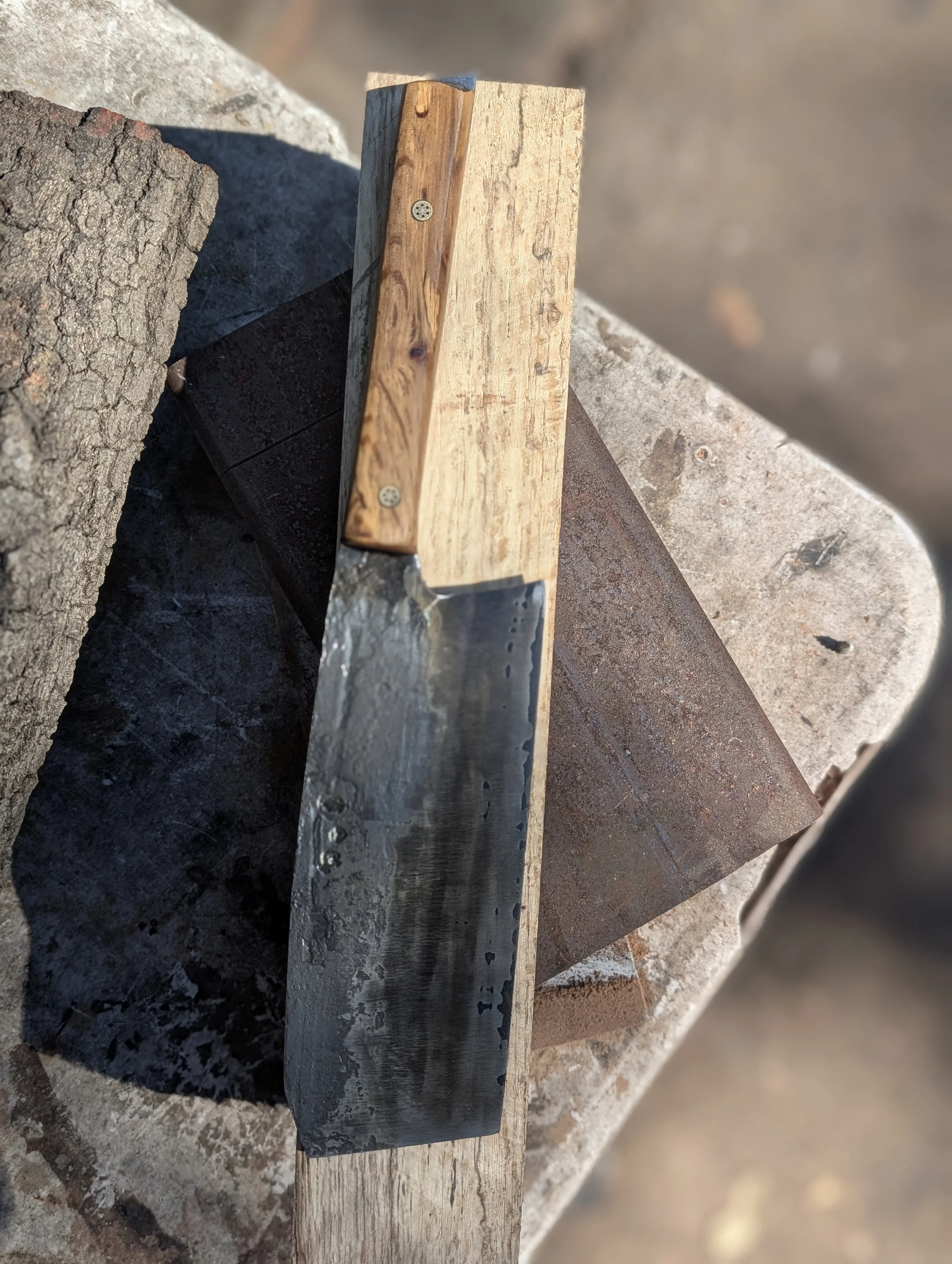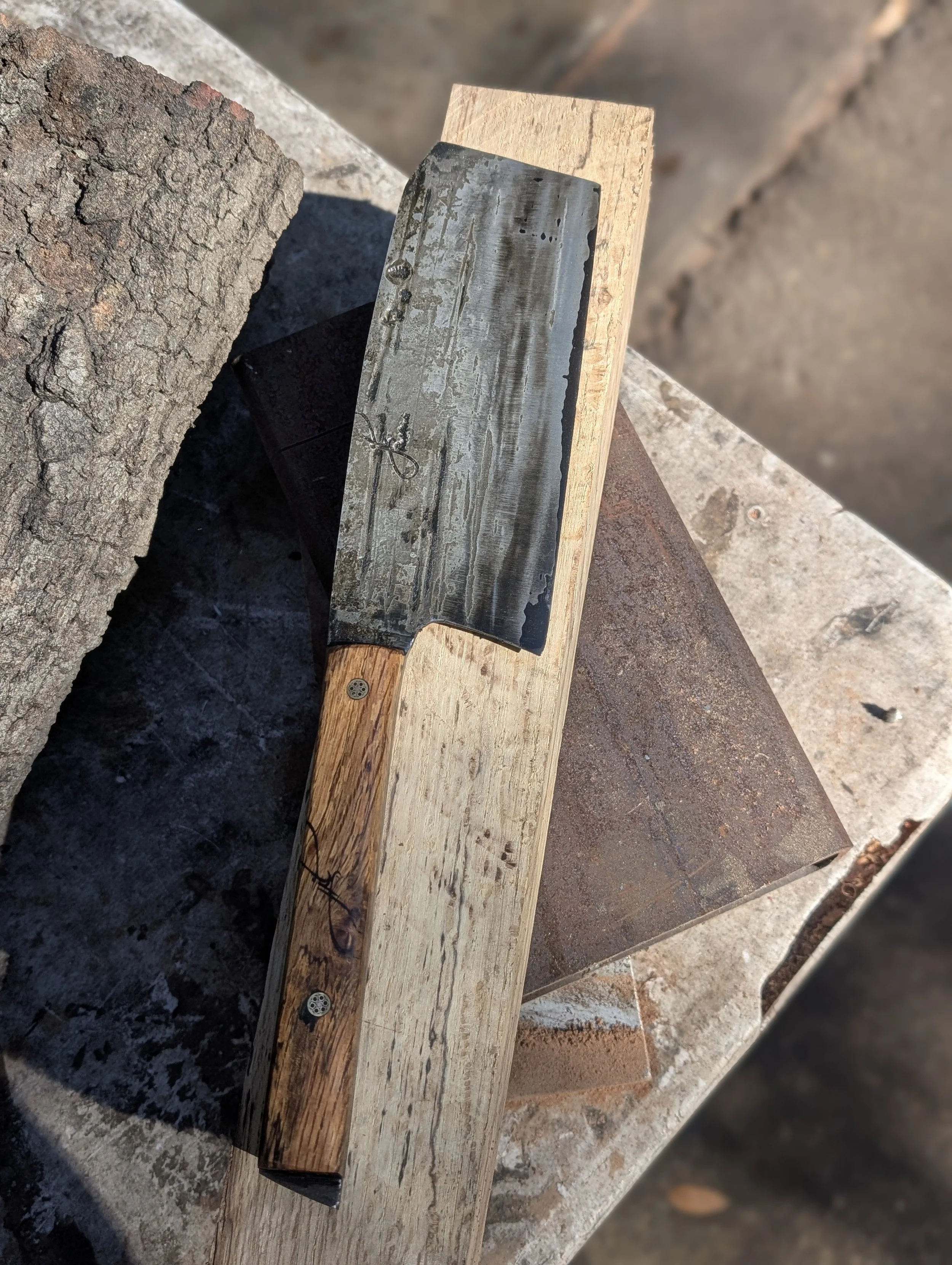 Cleavery Categories: All Gyuto/ Chef's Knives Santoku Style Cleavery Mini/Paring Knives Large Format Knives Handmade Collection All / 6.5" San Mai Full Tang Chinese Style Cleaver + Spalted Oak Handle + Custom matching Saya Sale Price: $300.00 Original Price: $350.00 Sale 5.5" Baby cleaver Sale Price: $125.00 Original Price: $175.00 Sale