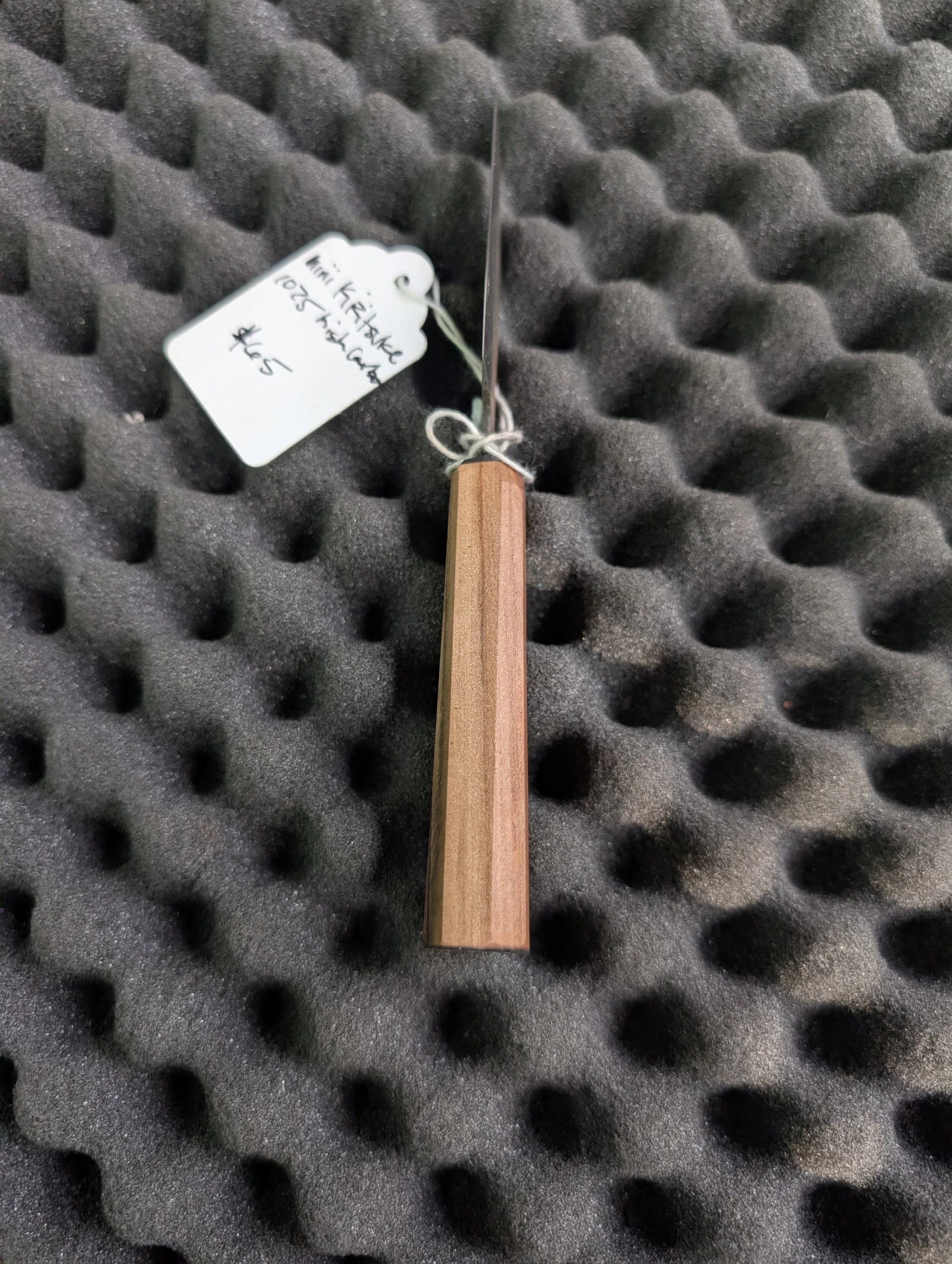 Browse › Mini Kiritsuke + Hickory Handle Image 1 of 4 Image 2 of 4 Image 3 of 4 Image 4 of 4 Mini Kiritsuke + Hickory Handle $65.00 2.75” mini Kiritsuke blade forged from 1075 high carbon steel and suited with a stabilized Hickory wood handle Purchase Added! 2.75” mini Kiritsuke blade forged from 1075 high carbon steel and suited with a stabilized Hickory wood handle